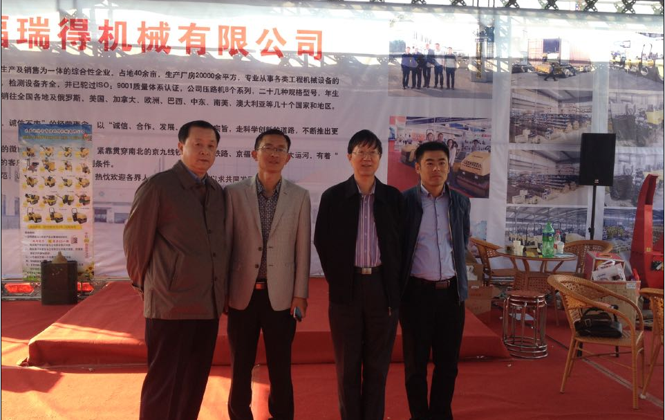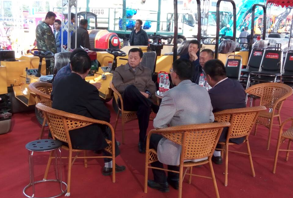 中國建筑機械協(xié)會會長張小軒在福瑞得機械產品展位親切交談,對我公司生產的小型壓路機系列:瀝青路面修補設備溪流:激光攤鋪設備給與高度評價,對于我公司成功承辦2015全國秋季建筑機械交易會給與肯定。