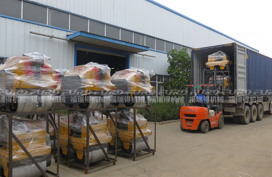 10月25日,福瑞得機械46�_手扶�p��壓路機�b�出口墨西哥。