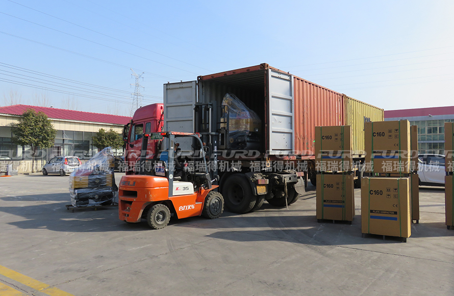 2月22日,福瑞得機(jī)械5�_(tái)手扶壓路機(jī)和18�_(tái)平板夯打包�b�發(fā)往埃塞俄比亞。