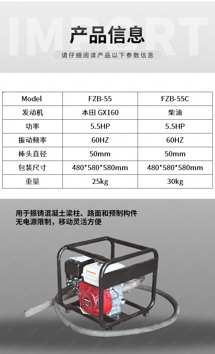 用于振�T混凝土梁柱、路面和�A(yù)制構(g�u)件。 無�源限制,移動(d�ng)�`活方便。