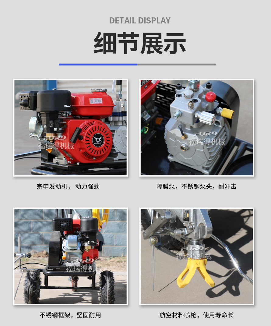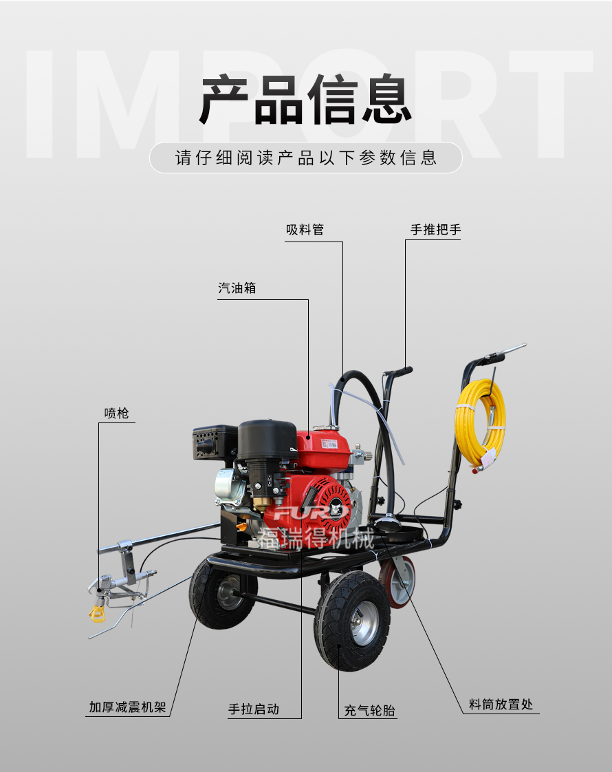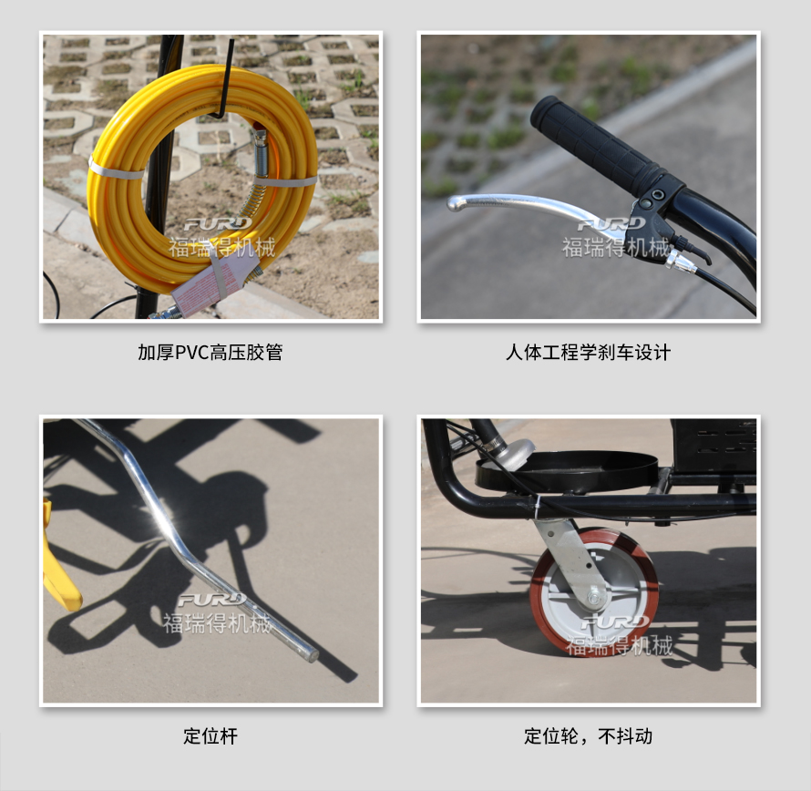 小型手推式道路劃線機(jī)是一種在道路、停車場、廣場和跑道等平整地面上劃出不同約束、指引和警示等規(guī)則限制標(biāo)志的路面施工機(jī)械。最常見的就是在馬路上劃斑馬線,在路上劃車庫線、停車線等等應(yīng)用于小型工程、短途施工,活動方便,靈活操作。