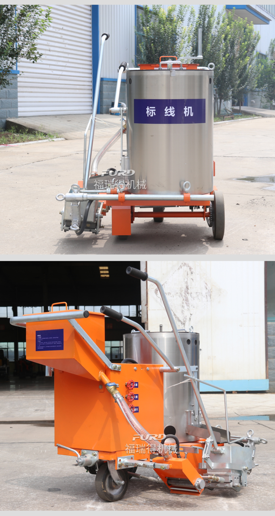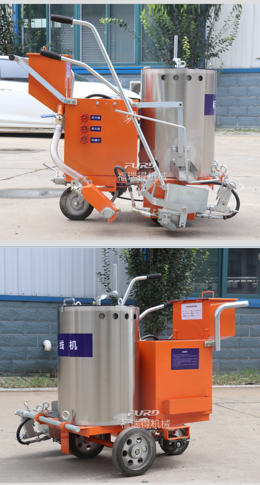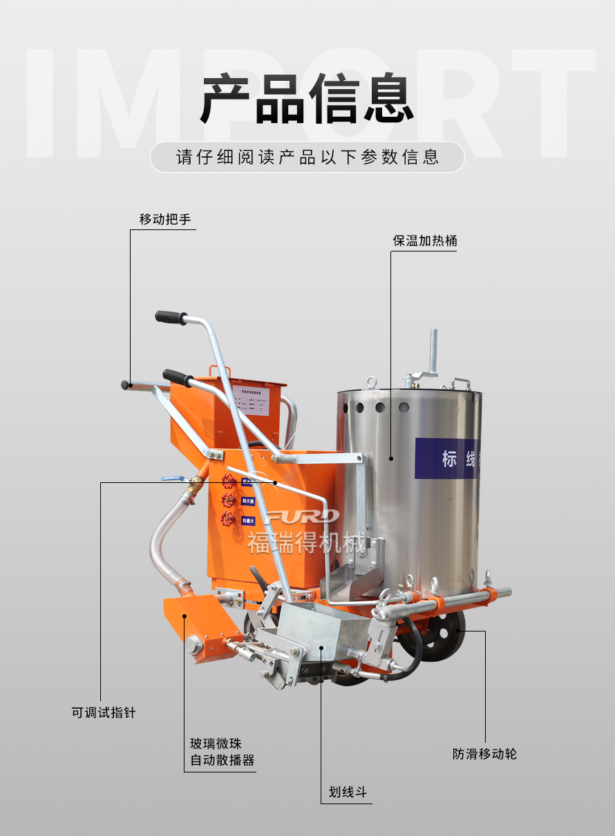 應用于道路、高速公路、停�場、廣場和跑道的在平整地面�劃出不同約速、指引和警示等�(guī)則限制標志的路面施工機械。