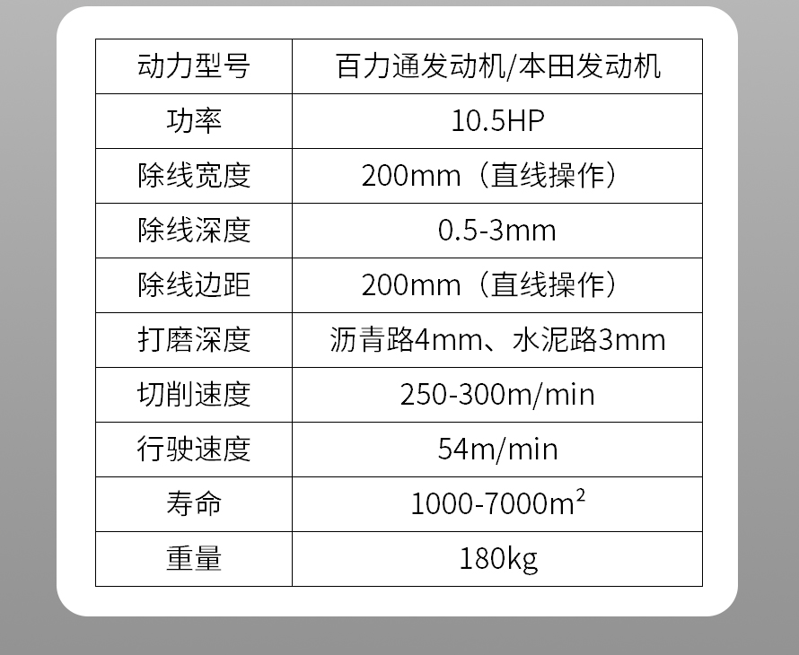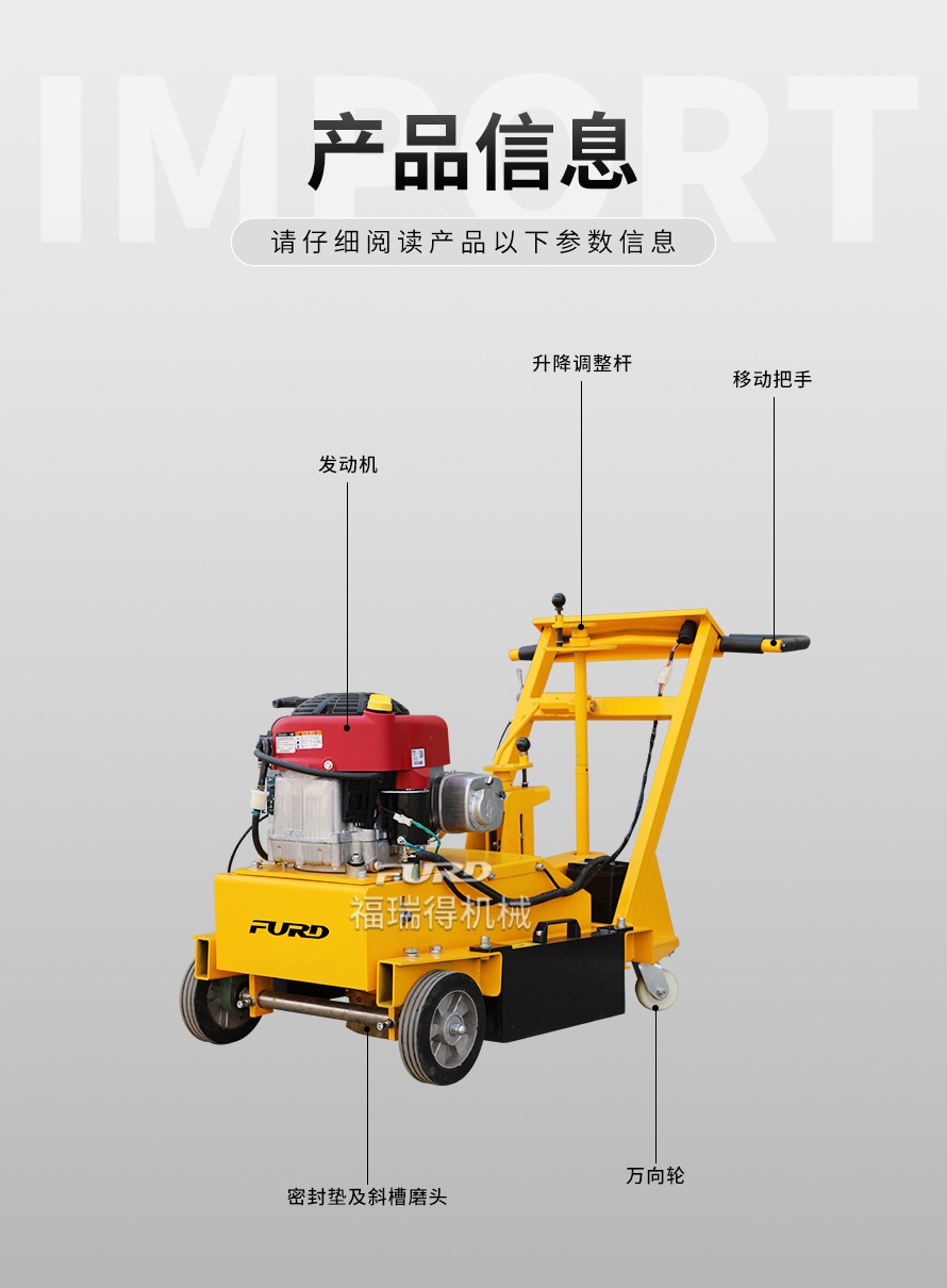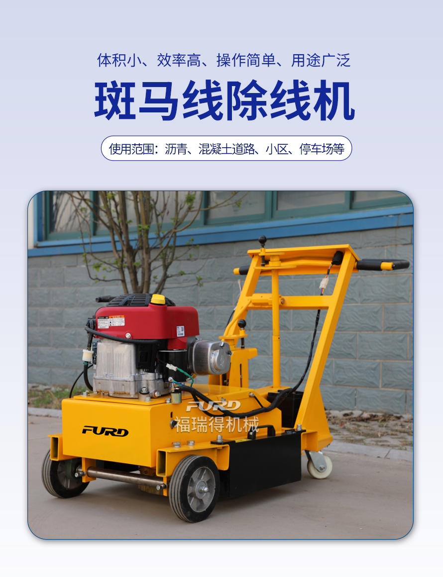 特點(diǎn):體積小、重量輕、機(jī)動(dòng)靈活、工作效率高、操作簡(jiǎn)單。 適應(yīng)范圍:主要用于瀝青道路、混凝土道路、物業(yè)小區(qū)、機(jī)場(chǎng)、停車(chē)場(chǎng)等地的標(biāo)線(xiàn)清除。