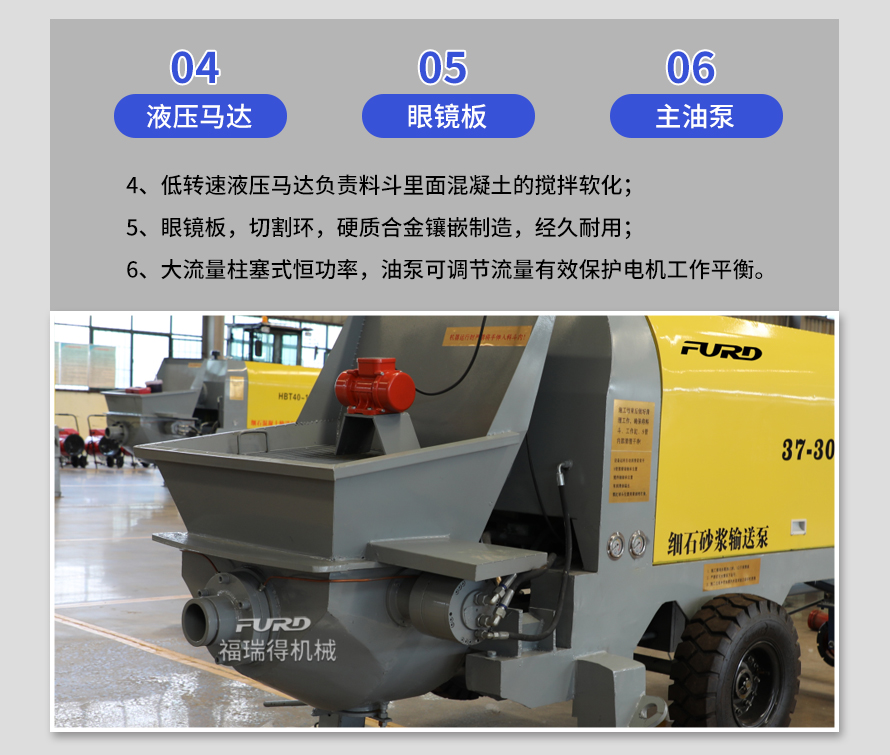 產(chǎn)品介紹: 1,大流量 采用加粗料缸,�機(jī)械每一次循環(huán)出料多20% 2,效率高 移動便捷全部采用快接式管道卡,提高工作效率 3,便捷 本機(jī)可�h(yuǎn)程�b控,操作不受地�c限制,更加人性化 產(chǎn)品用途: 坡道灌�{,水平地面,隧道澆筑,模