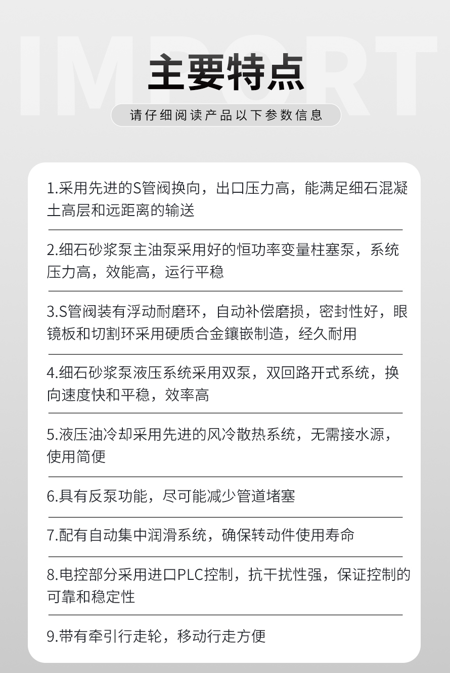 25型二次構(g�u)造柱專用�送泵是一種復合泵送要求的混凝土泵,通�^水平或垂直安�b的管道,�B續(xù)�送到澆注現(xiàn)場的細石混凝土�送�O(shè)備。 廣泛應用于二次構(g�u)造柱填充、地暖工程、屋面、高層建筑的墻、水庫、水�站、港口、碼�^、基礎(chǔ)�理 �弱地基 加固注�{ 隧