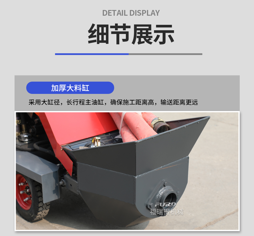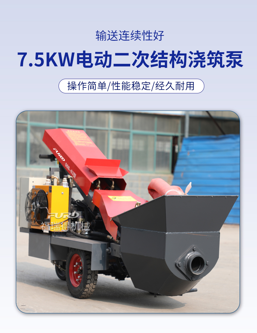 福瑞得二次結(jié)構(g�u)澆筑泵�m用于�品房、�r(nóng)村建房,打二次構(g�u)造柱,圈梁等,是您澆筑的好�O(shè)備。�機(jī)功率小,�w積小,重量�p,料斗可�降,真正能提高您的施工效率,是人工澆筑的幾十倍。
