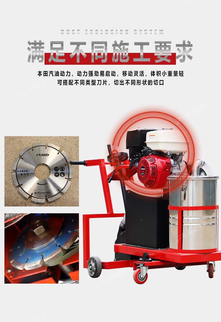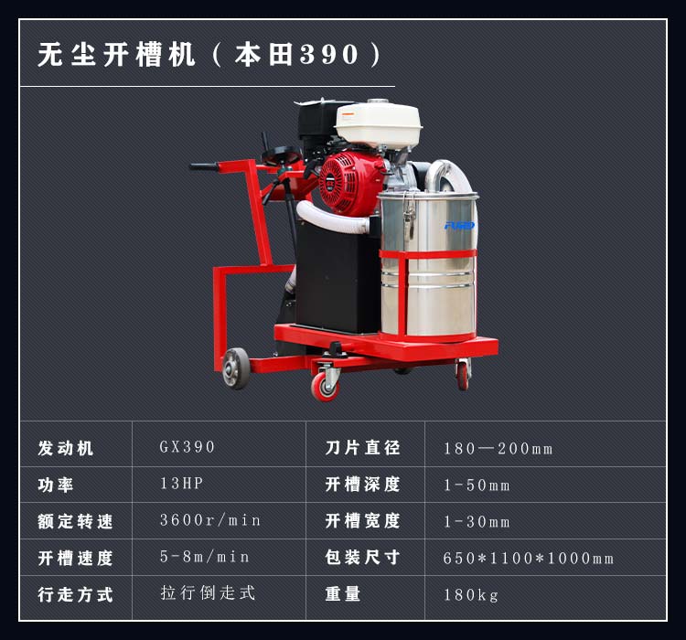 路面無塵開槽機是主要用于瀝青路面修補裂縫開槽的機械,其集吸塵、開槽為一體,環(huán)保性.