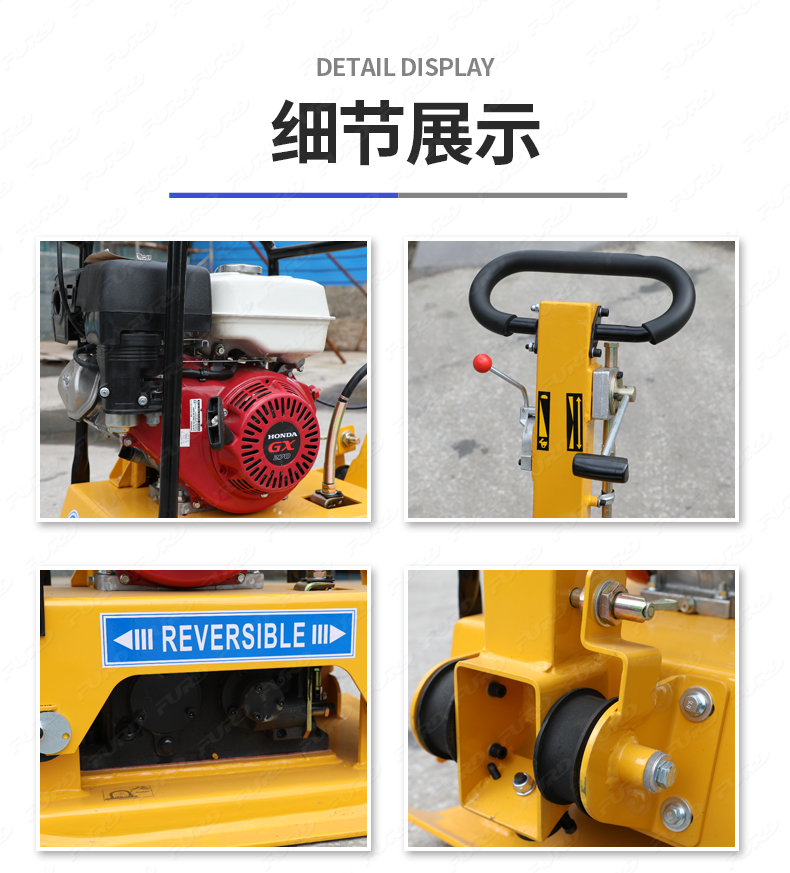 �m用于路基�緣、橋涵、管道、溝槽底部等狹�L地帶的壓實。 本田汽油動力,名牌品�|(zhì)保�C。