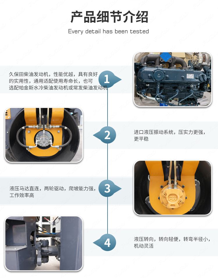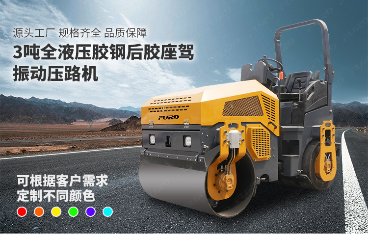 FYL-1200T為橡膠輪胎振動壓路機,該壓路機前有鋼輪,后有橡膠輪,結(jié)合鋼輪和輪胎壓路機的優(yōu)點,具有更高的工作效率。